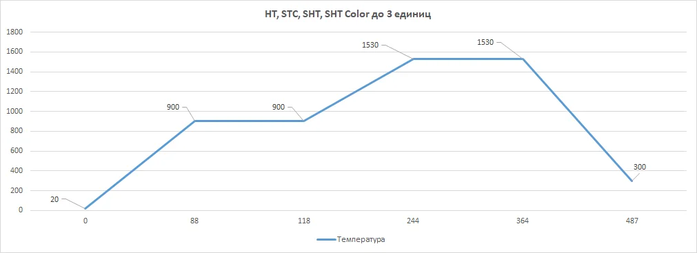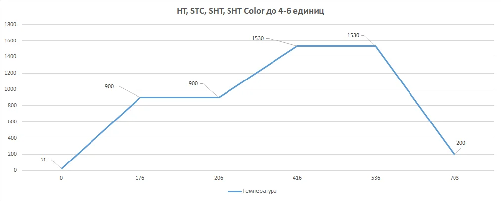 | Этап 3 | 900 ˚C | 3 ˚C/мин | 1530 ˚C |