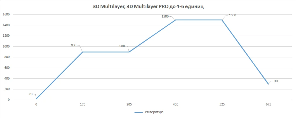 | Этап 3 | 900 ˚C | 3 ˚C/мин | 1500 ˚C |