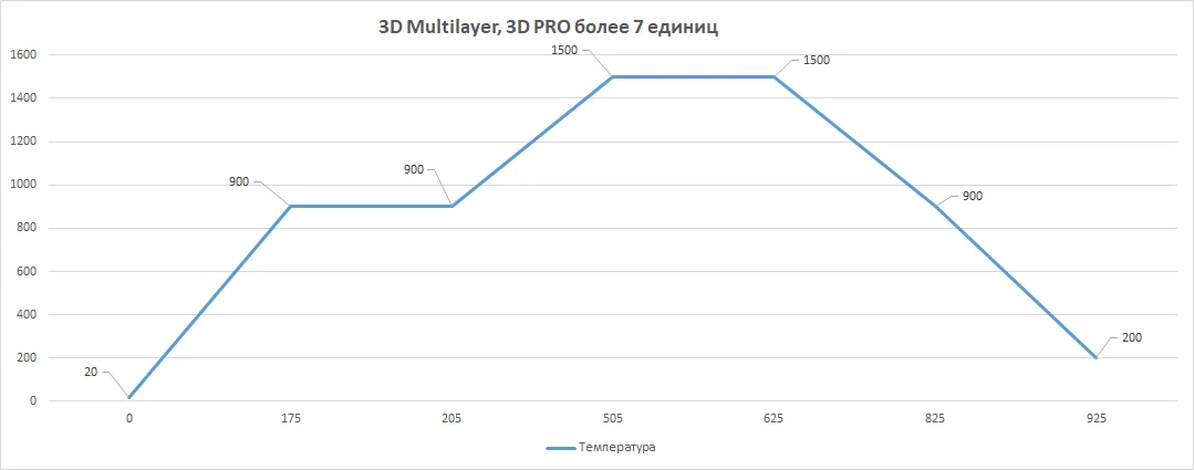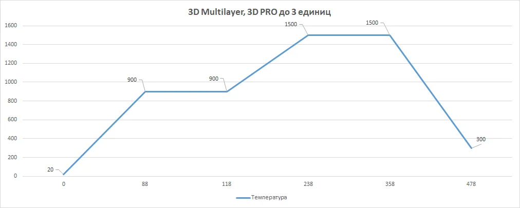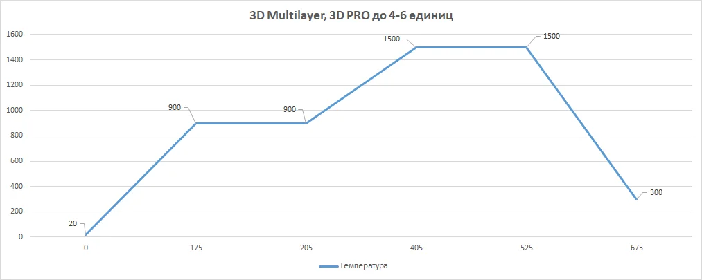 | Этап 3 | 900 ˚C | 3 ˚C/мин | 1500 ˚C |